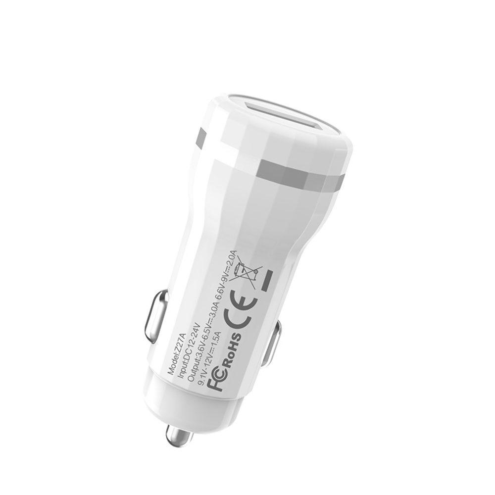 Автомобильное зарядное устройство Hoco Z27A белого цвета обеспечивает быструю зарядку с мощностью 18W. Оно оснащено USB-разъемом и поддерживает протокол Quick Charge 3.0, что позволяет эффективно заряжать совместимые устройства в автомобиле.