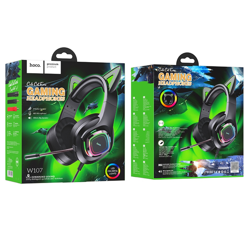 Наушники накладные Hoco W107 игровые с ушками и LED подсветкой Jack 3.5 elf cat