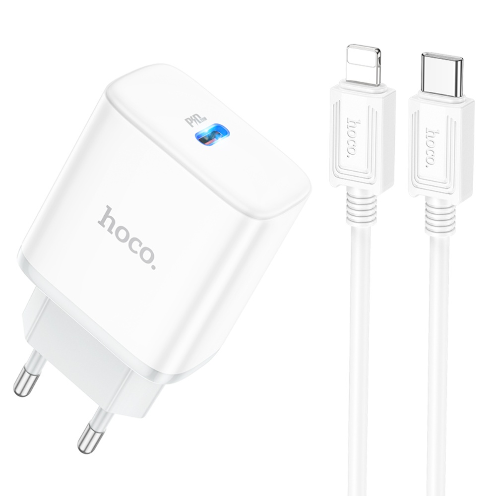 Сетевое зарядное устройство Hoco C104A Type-C PD 20W белое + кабель Type-C to Lightning