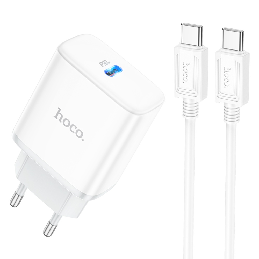 Сетевое зарядное устройство Hoco C104A Type-C PD 20W белое + кабель Type-C to Type-C