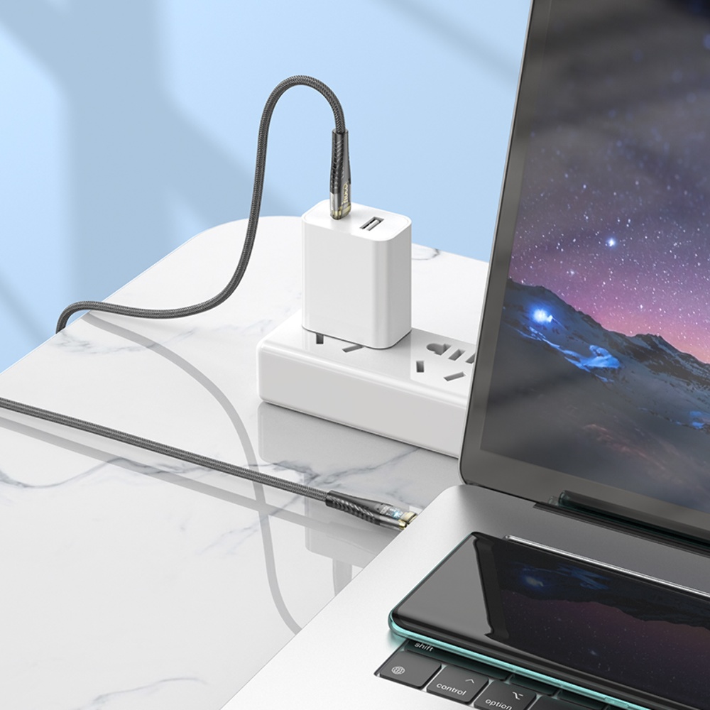 Кабель Hoco U121 с индикатором Type-C to Type-C PD 60W 1.2m black
