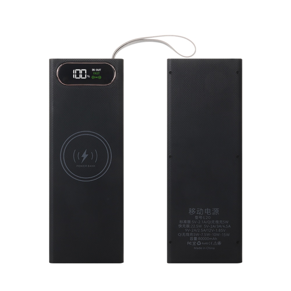 Корпус Multi-powerbank L20, под элементы 18650 до 20 шт, 22.5+15W, с беспроводной зарядкой и фонарём, черный представляет собой оптимальное решение для тех, кто стремится к максимальной емкости и эффективности.