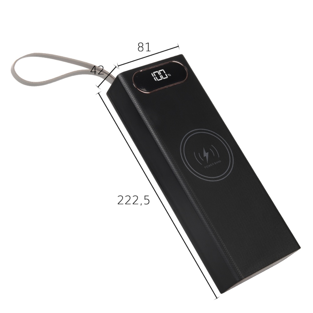 Корпус Multi-powerbank L20, под элементы 18650 до 20 шт, 22.5+15W, с беспроводной зарядкой и фонарём, черный