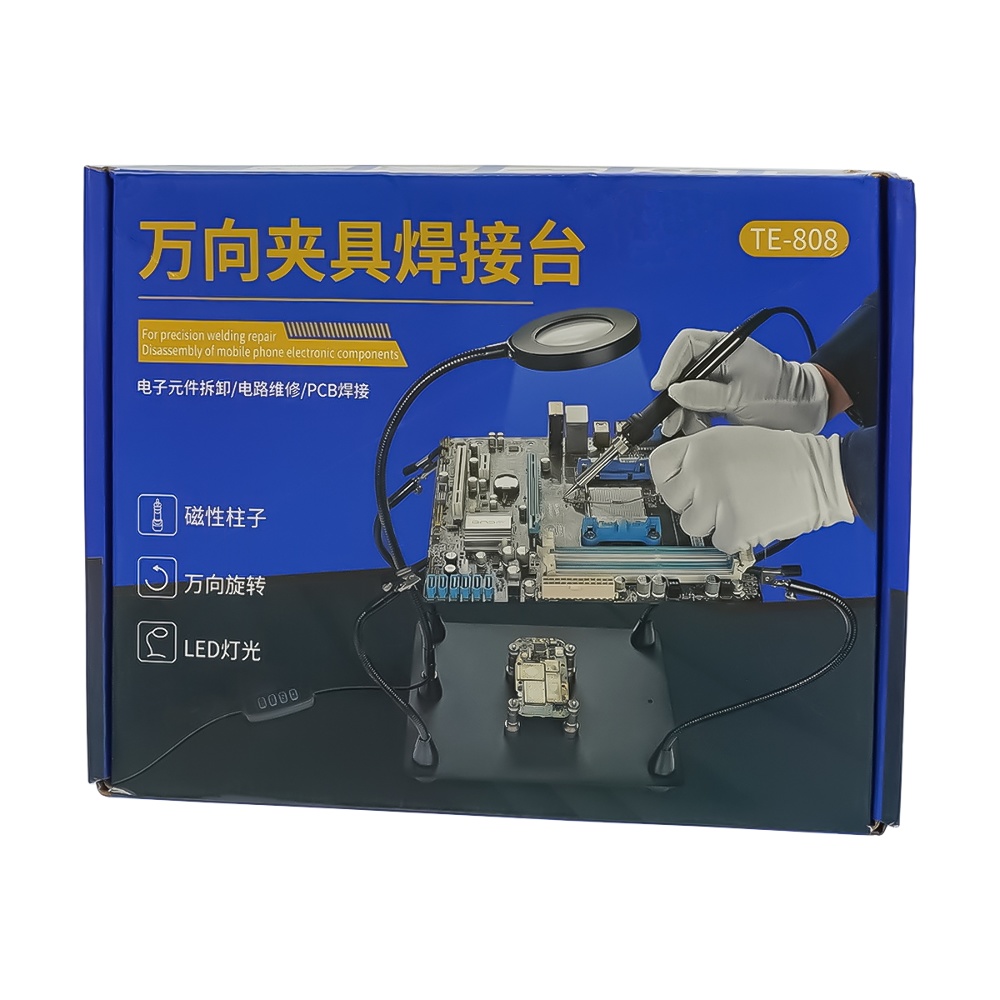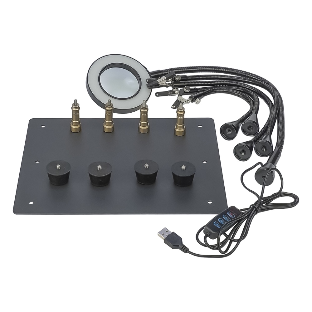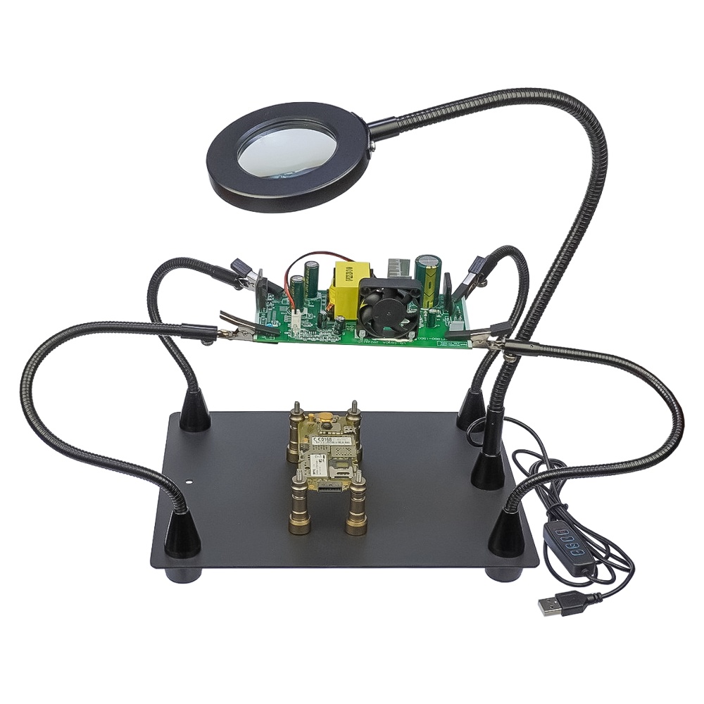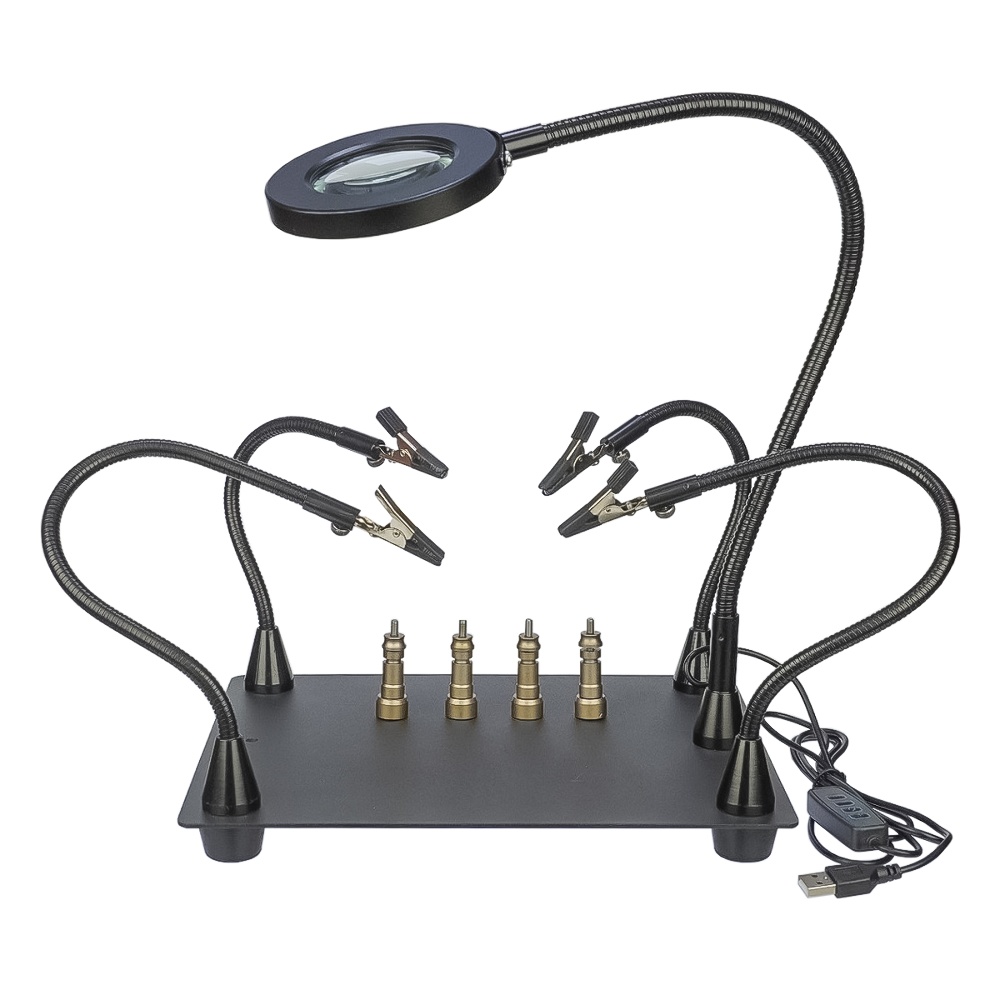 Держатель плат TE-808 с зажимами на гибгих ножках (4 шт), магнитными фиксаторами (4 шт), линзой c LED (d=62 мм, 3x)