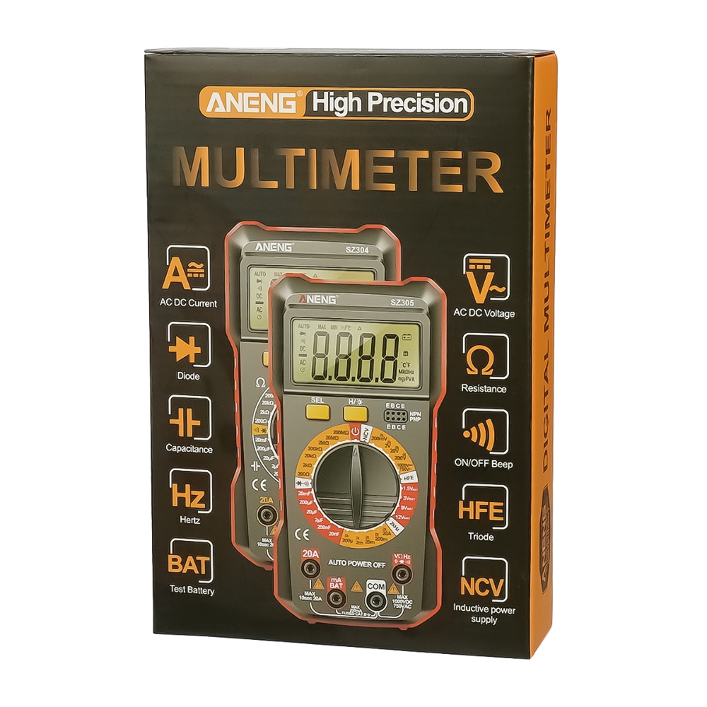 Мультиметр цифровой Aneng SZ305 с подсветкой, функцией BAT, детектором скрытой проводки (ток до 10A)