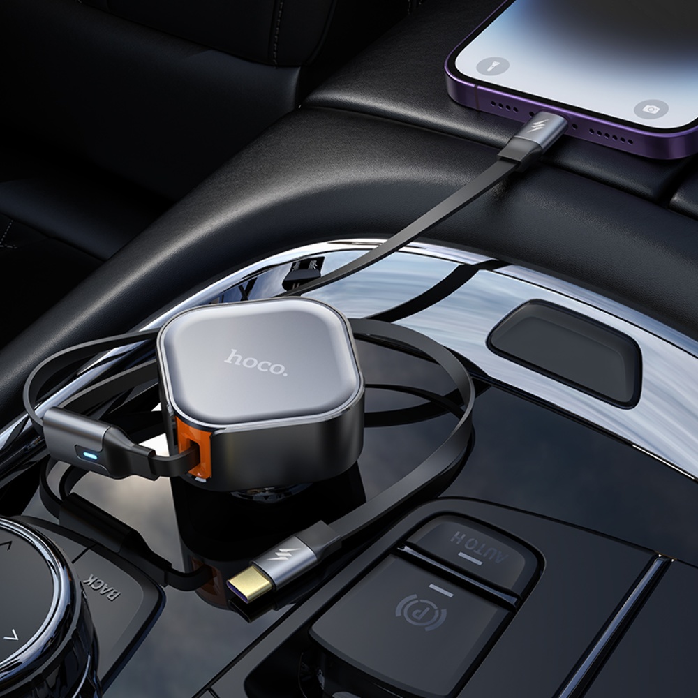 - Длина телескопического кабеля: 90 см, обеспечивает удобство при зарядке устройств в автомобиле.