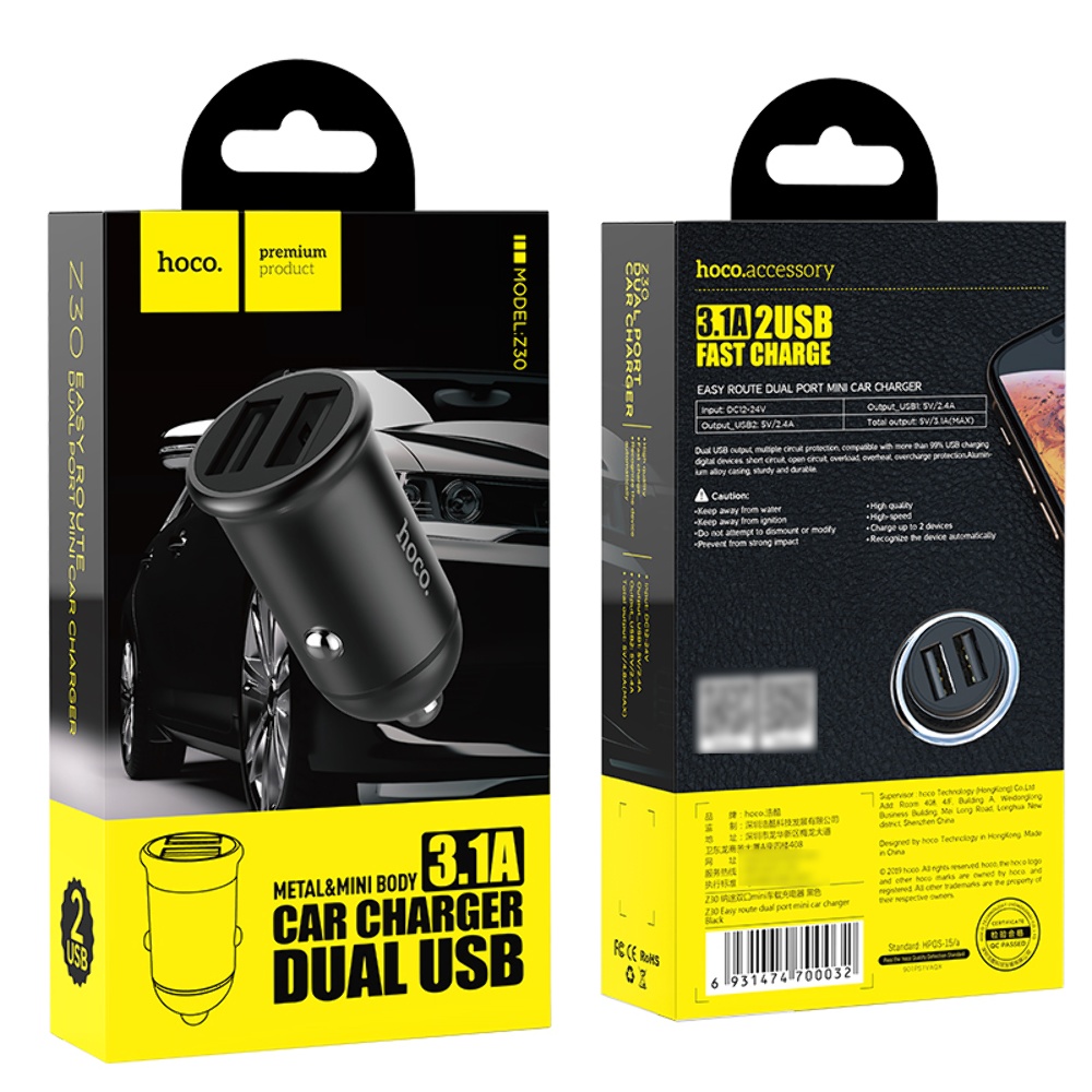 Автомобильное зарядное устройство Hoco Z30 2 USB black