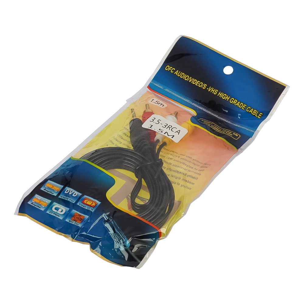 Мультимедийный кабель TRS Jack 3.5 to 3RCA 1.5m black