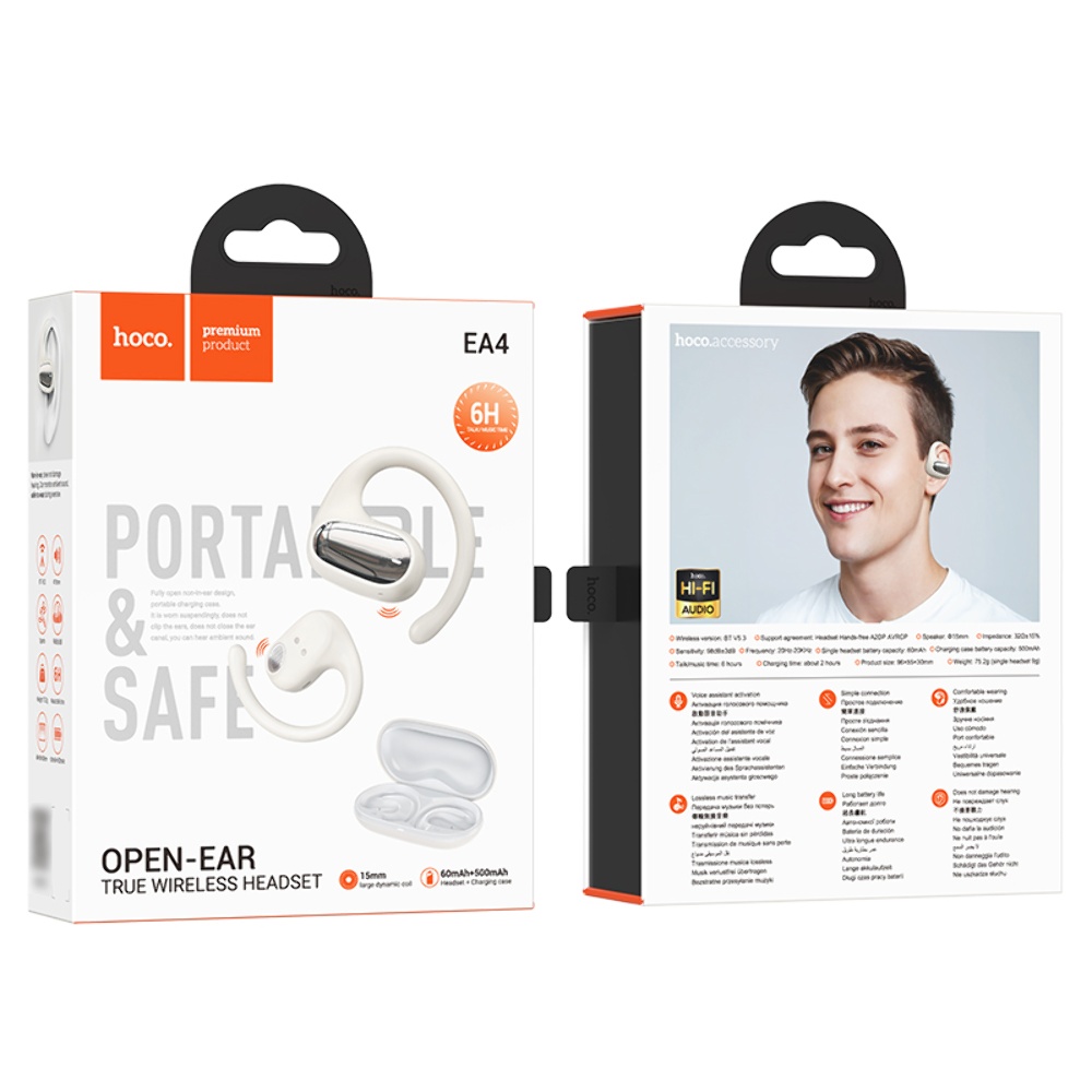 Беспроводные TWS наушники Hoco EA4 открытые milky white — это идеальное сочетание комфорта и современных технологий, обладают открытой конструкцией, что делает их удобными для активного образа жизни, обеспечивая свободу движений и легкость при длительном ношении, не создавая давления на ушной канал
