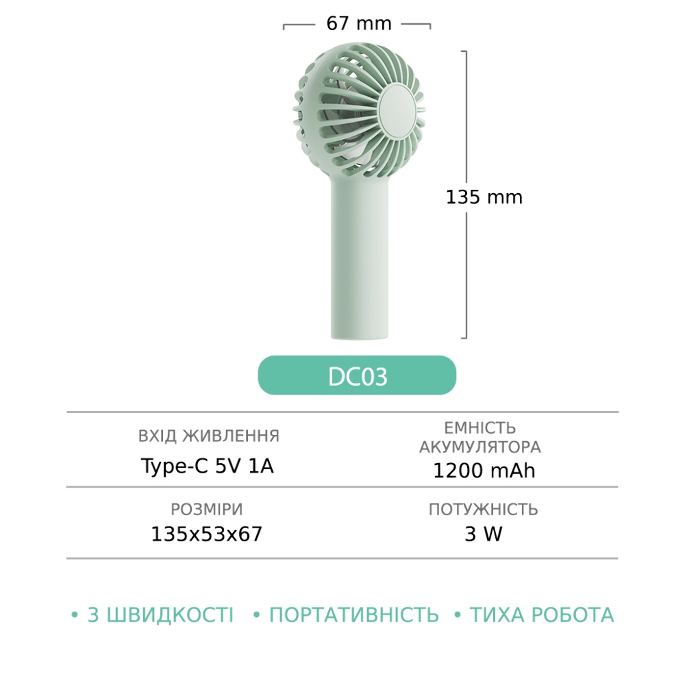 Ручной беспроводной вентилятор GXQC DC03 зелёный - это идеальное решение для создания комфортной атмосферы в любом месте и в любое время. Оснащён встроенной аккумуляторной батареей и бесщеточным двигателем обеспечивающим долговременную и тихую работу.