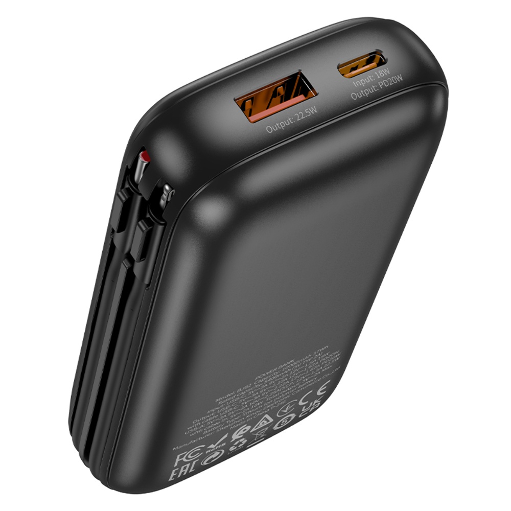 Power bank Borofone BJ62 10000mAh 22.5W+PD20W + кабеля 2в1 Type-C/ Lightning черный