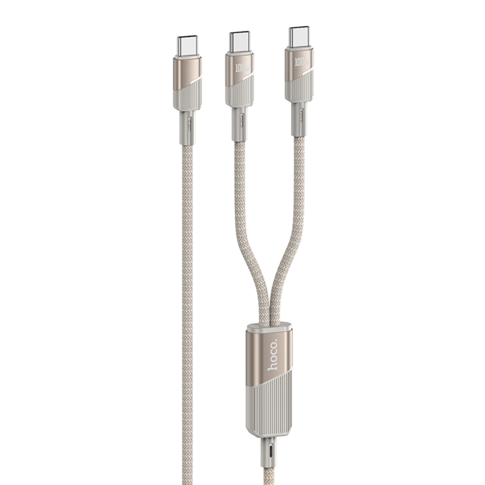 Кабель Hoco U139 2в1 Type-C to Type-C/ Type-C PD 100W 1.2m gold