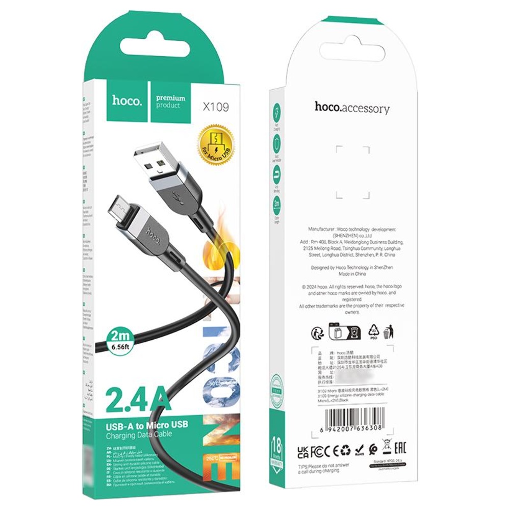Особенности кабеля Hoco X109 USB to MicroUSB 2m black: