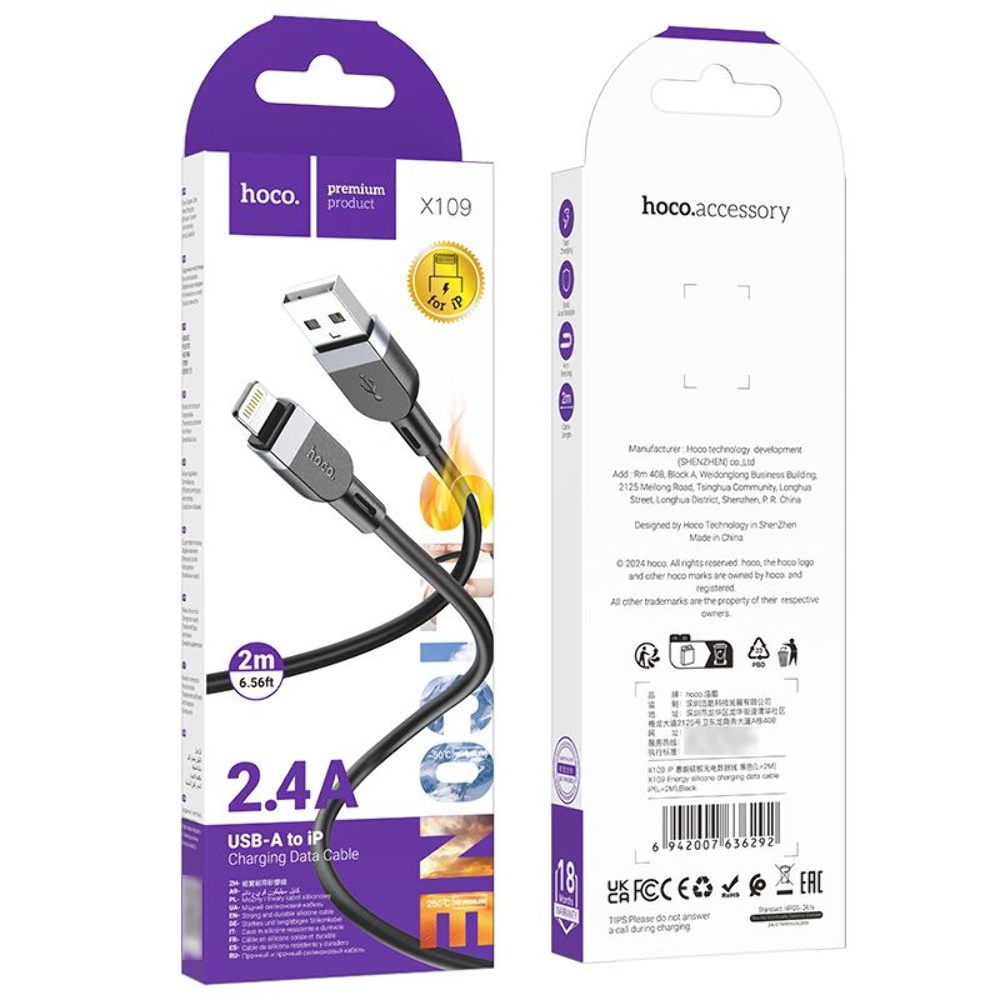 Особенности кабеля Hoco X109 USB to Lightning 2m black: