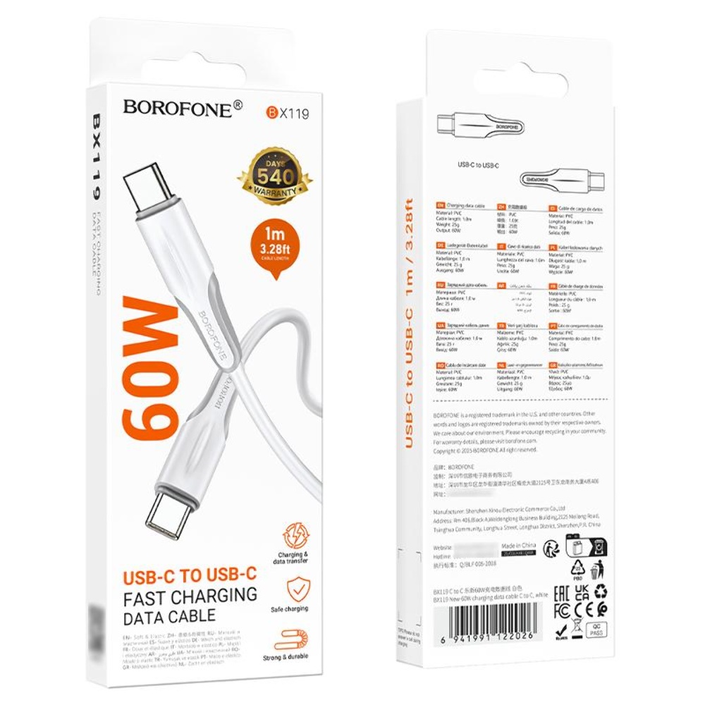 Кабель Borofone BX119 Type-C to Type-C PD 60W white