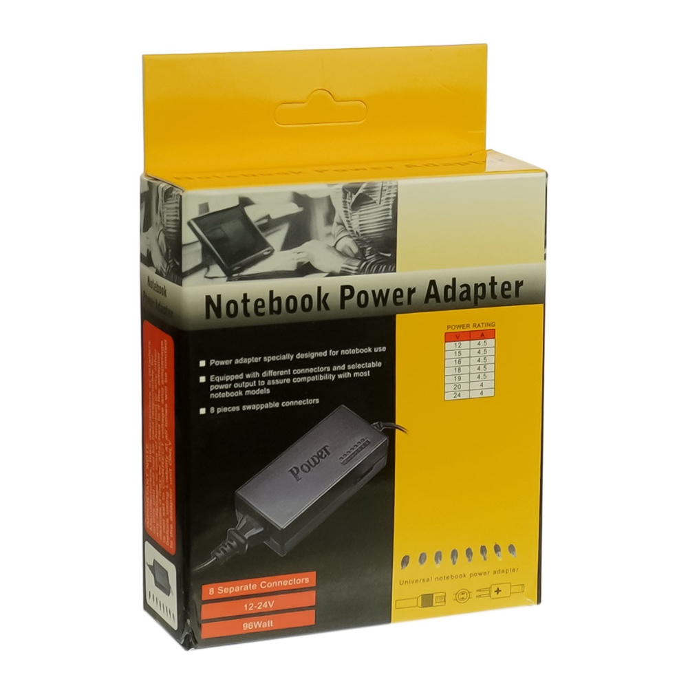 Блок питания для ноутбуков и мониторов BSK-96W с переходниками (8 шт) и регулировкой напряжения 12-24V/ 4-4.5A, EU 220V