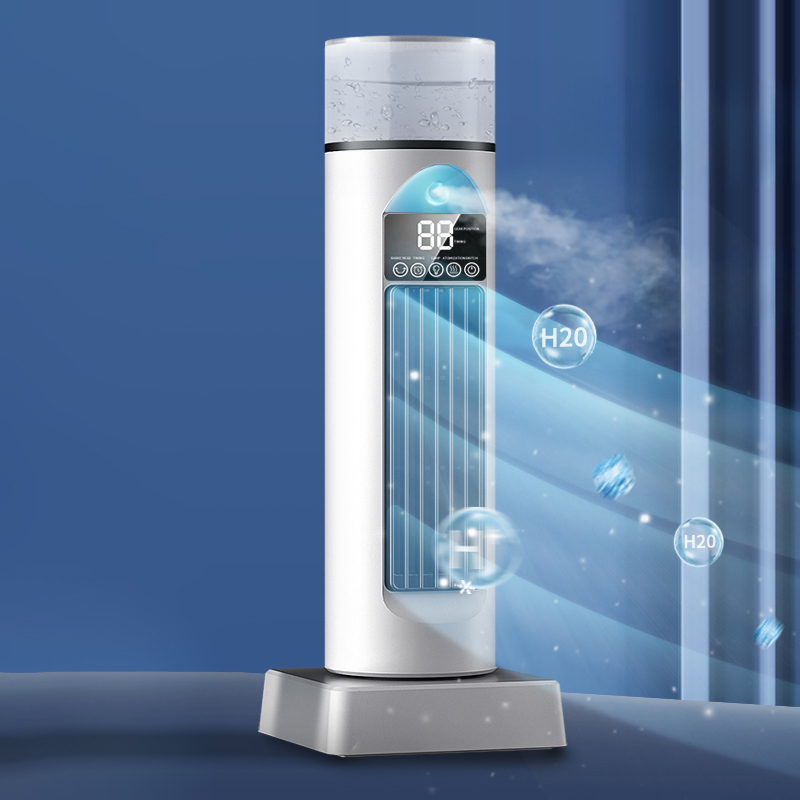 Башенный беспроводной вентилятор BYM-907S с питанием от USB, функцией увлажнения, подсветкой и пультом white