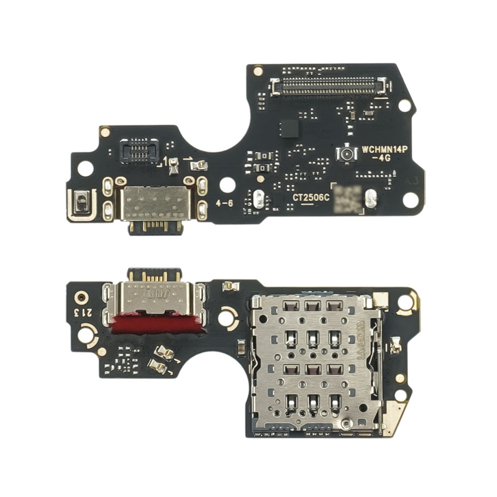 Разъём зарядки для Xiaomi Redmi Note 14 Pro (4G) на плате с микрофоном и компонентами