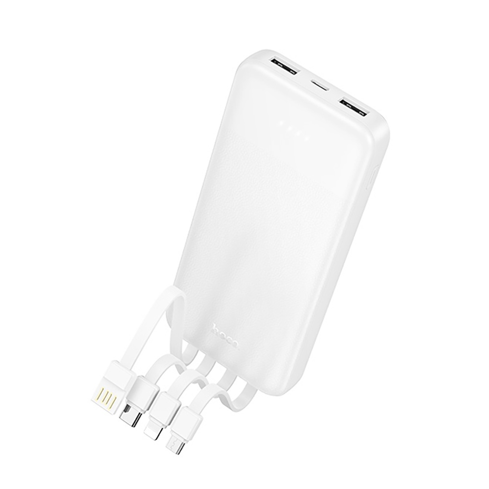 Power bank Hoco J163 10000mAh + кабеля 4в1 USB-А/ Lightnin/ Type-C/ MicroUSB white