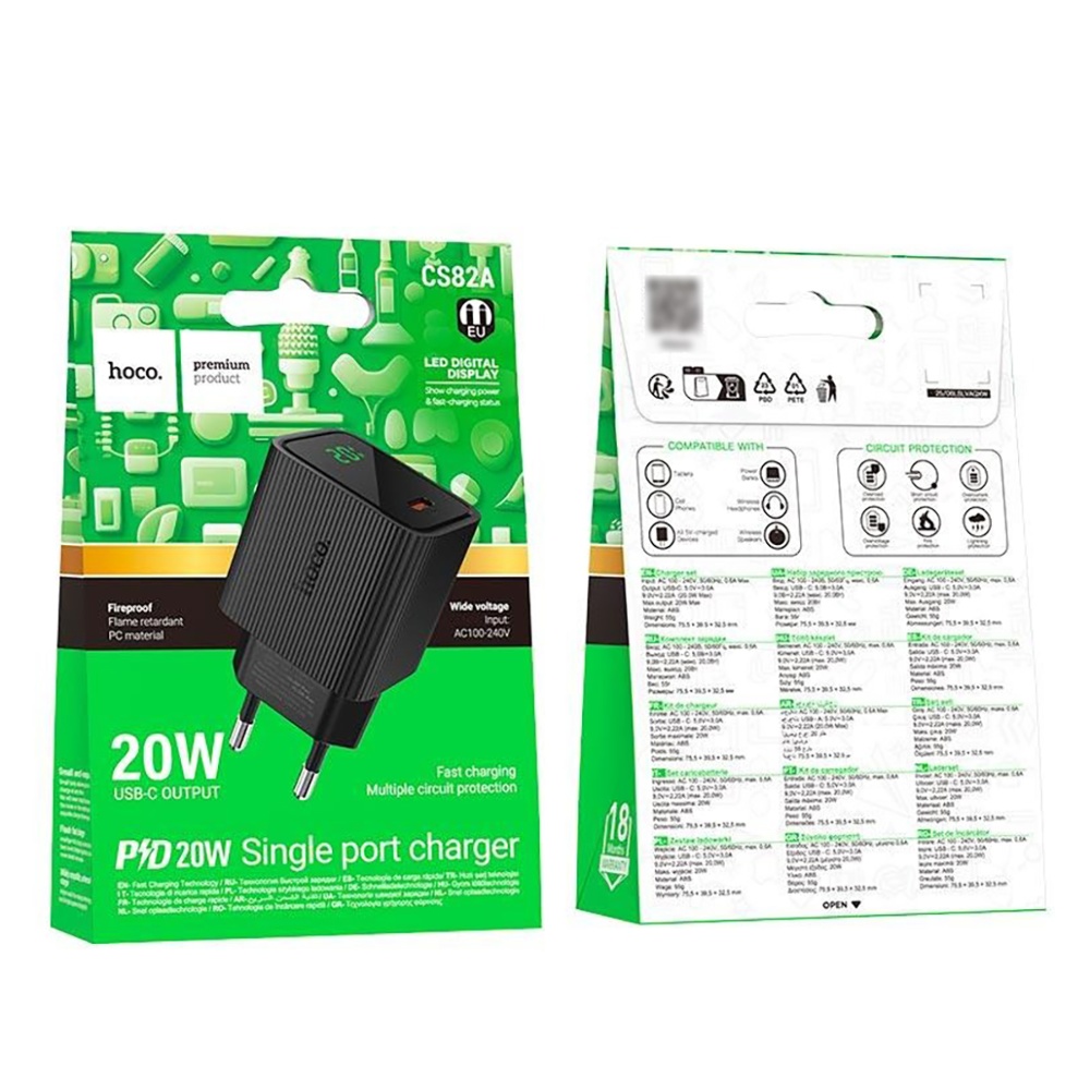 Сетевое зарядное устройство Hoco CS82A Type-C PD с дисплеем черного цвета - это надежный аксессуар для быстрой зарядки ваших устройств. Оно поддерживает быструю зарядку Power Delivery и Quick Charge, обеспечивая мощность до 20W. Это идеальный выбор для пользователей, которым важна скорость и качество зарядки.