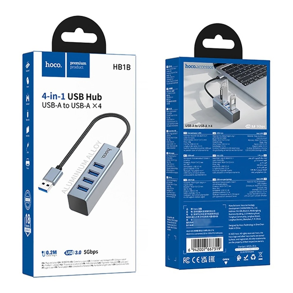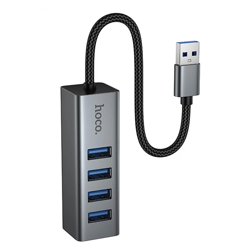 Адаптер переходник Hoco HB1B 4в1 USB to 4 USB 3.0 (F) metal gray