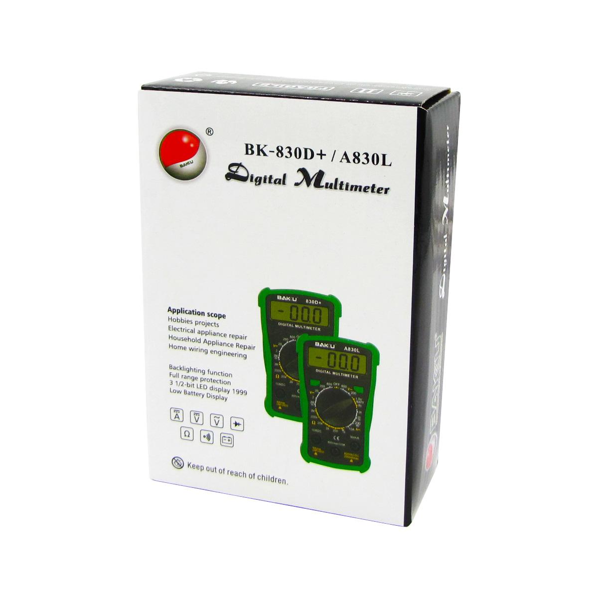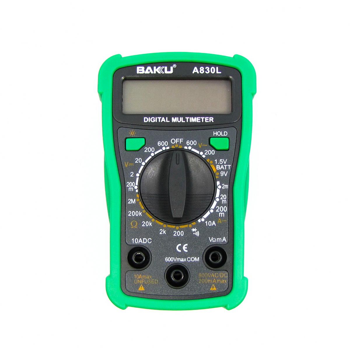 Цифровий мультиметр Baku A830L – це надійний та зручний інструмент для вимірювання електричних величин у різних умовах. Пристрій підтримує вимірювання змінної та постійної напруги, постійного струму, а також опору. Завдяки функції тестування батарейок та діодів, а також звуковому продзвонюванню, мультиметр ідеально підходить для використання як у побутових, так і професійних цілях. Компактні розміри та вбудоване підсвічування дисплея роблять його зручним для роботи в будь-яких умовах.