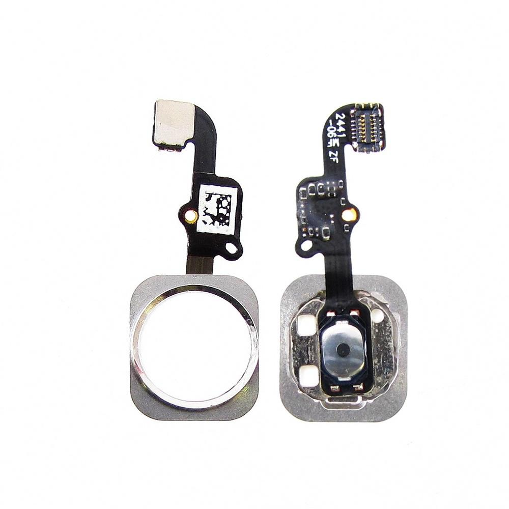 Шлейф для Apple iPhone 6/ 6 Plus на кнопку HOME, з білою кнопкою і сріблястим обідком