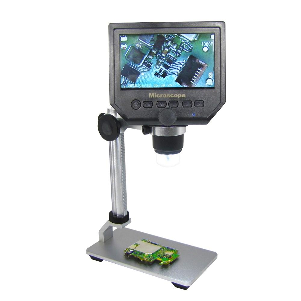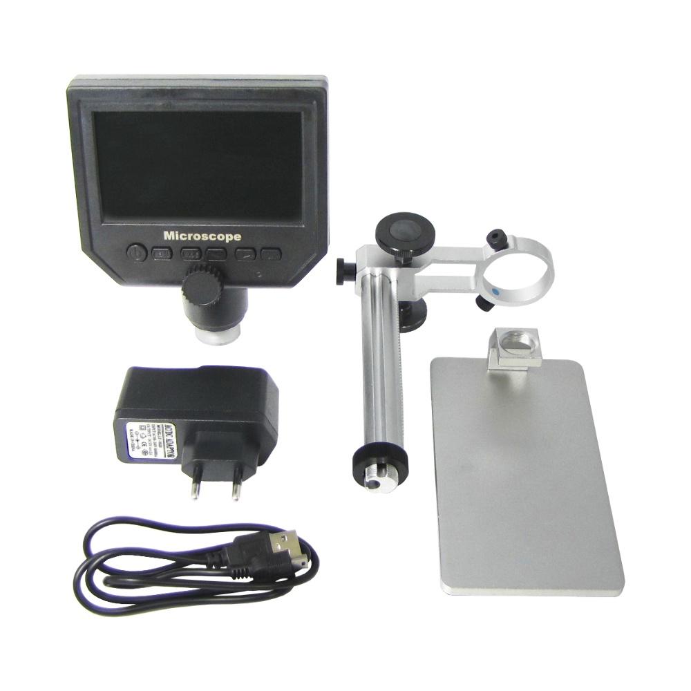 Цифровий мікроскоп з монітором 4.3" та штативом G600+ (microSD (16gb class 10), фокус 20-120 мм, кратність збільшення 600X)
