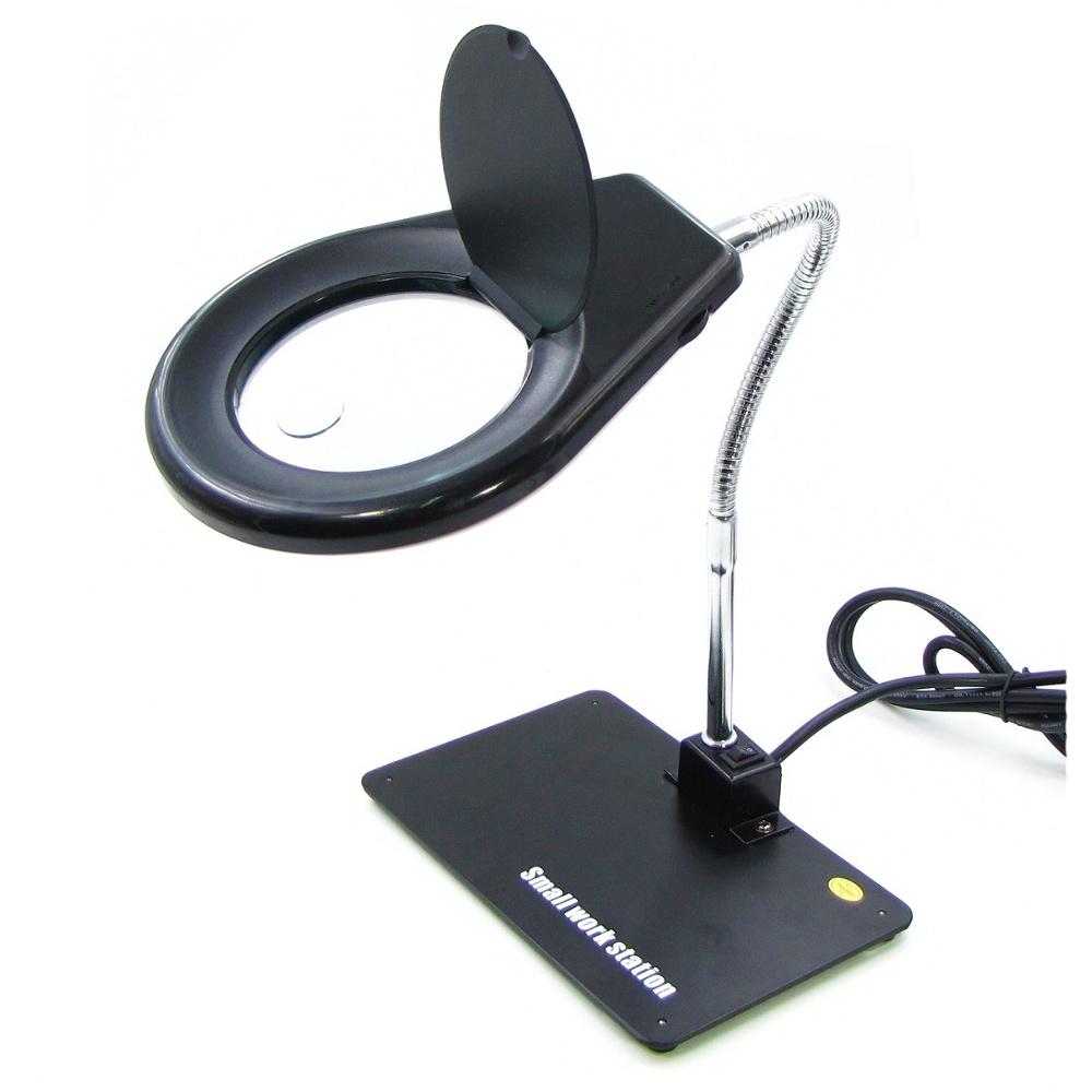 Лупа подвійна на гнучкій нозі з підставкою WEP 628A з регульованим LED-підсвічуванням 220V велика d=85 мм, 5x; мала d=20мм, 10x