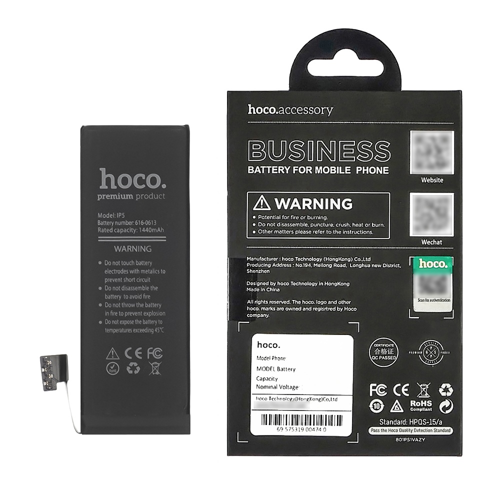 Акумулятор Hoco для Apple iPhone 5, а також інші запчастини і аксесуари для мобільних телефонів і планшетів можна вигідно придбати оптом в інтернет-магазині MasterClub.
