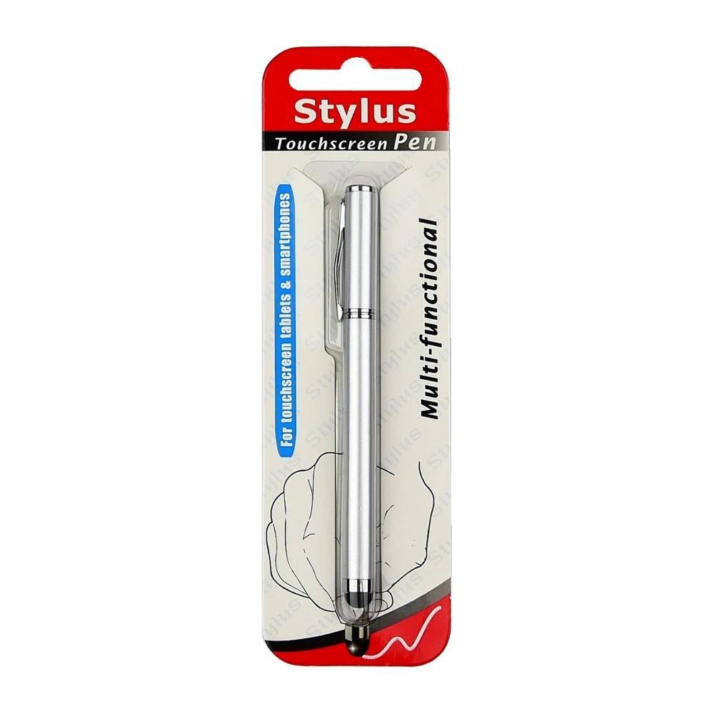 Стілус ємнісний, з кульковою ручкою, металевий, сріблястий.