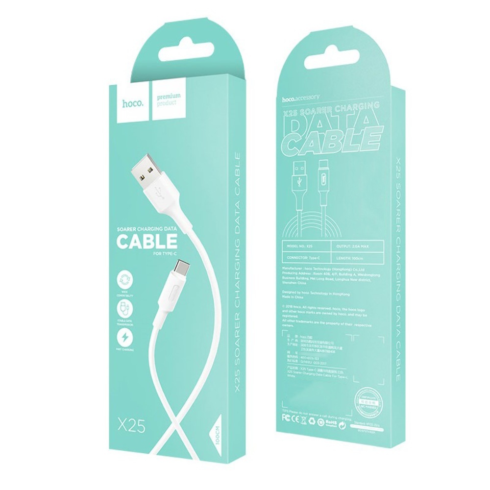 USB кабель Hoco X25 Type-C 2A 1m білий чудове рішення для заряджання та синхронізації даних ваших гаджетів. Шнур тактильно приємний, виконаний із якісних зносостійких матеріалів. Зручна довжина кабелю 1m. Кабель USB Hoco X25 дозволяє не лише зарядити ваші пристрої, а також передавати дані на комп'ютер чи смартфон.