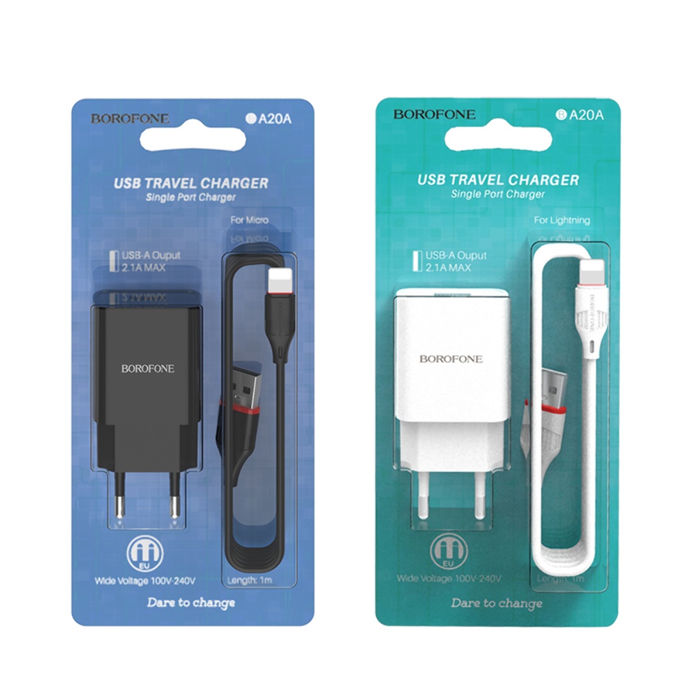 Мережевий зарядний пристрій Borofone BA20A USB чорний + кабель USB to Lightning