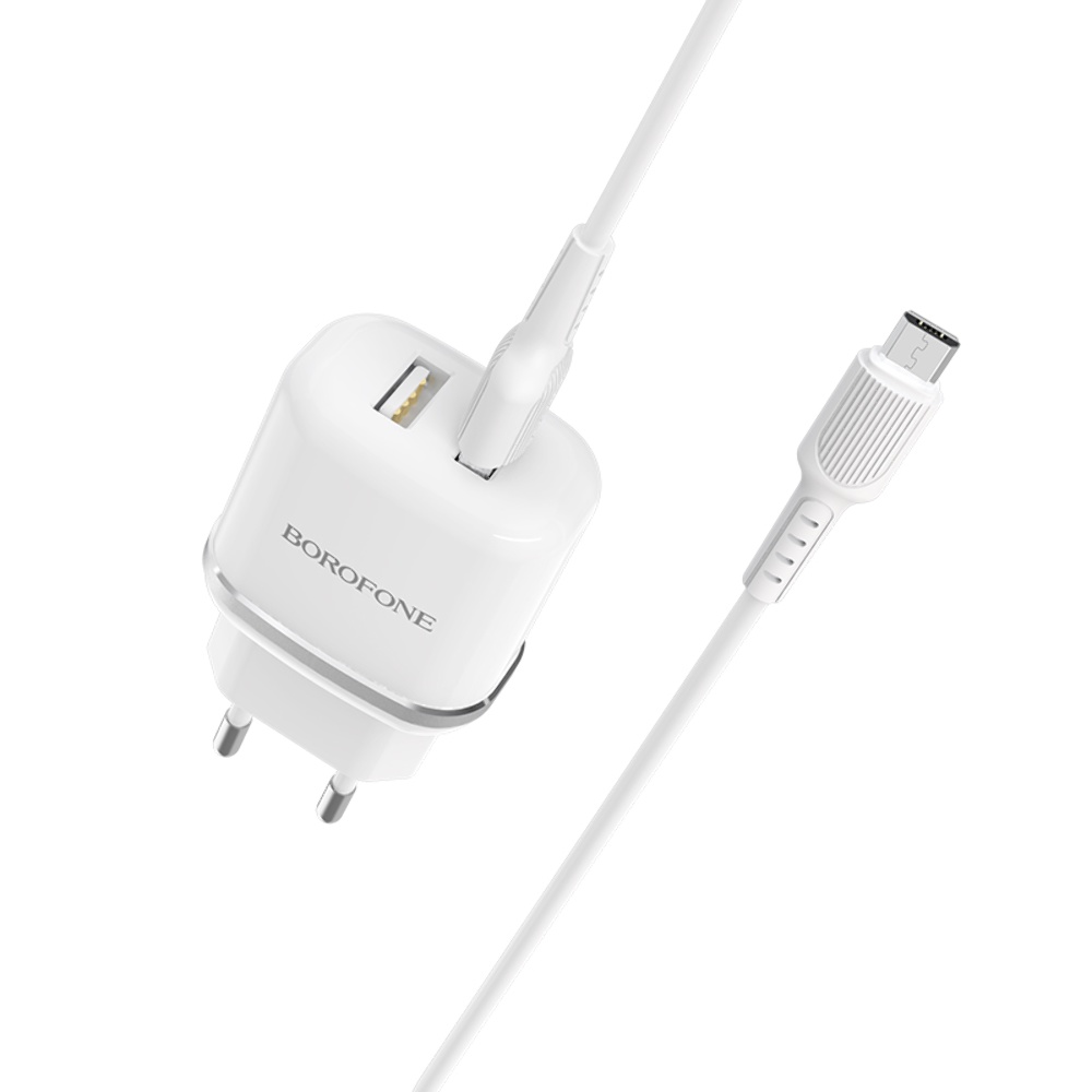 Мережевий зарядний пристрій Borofone BA25A 2 USB білий + кабель USB to MicroUSB
