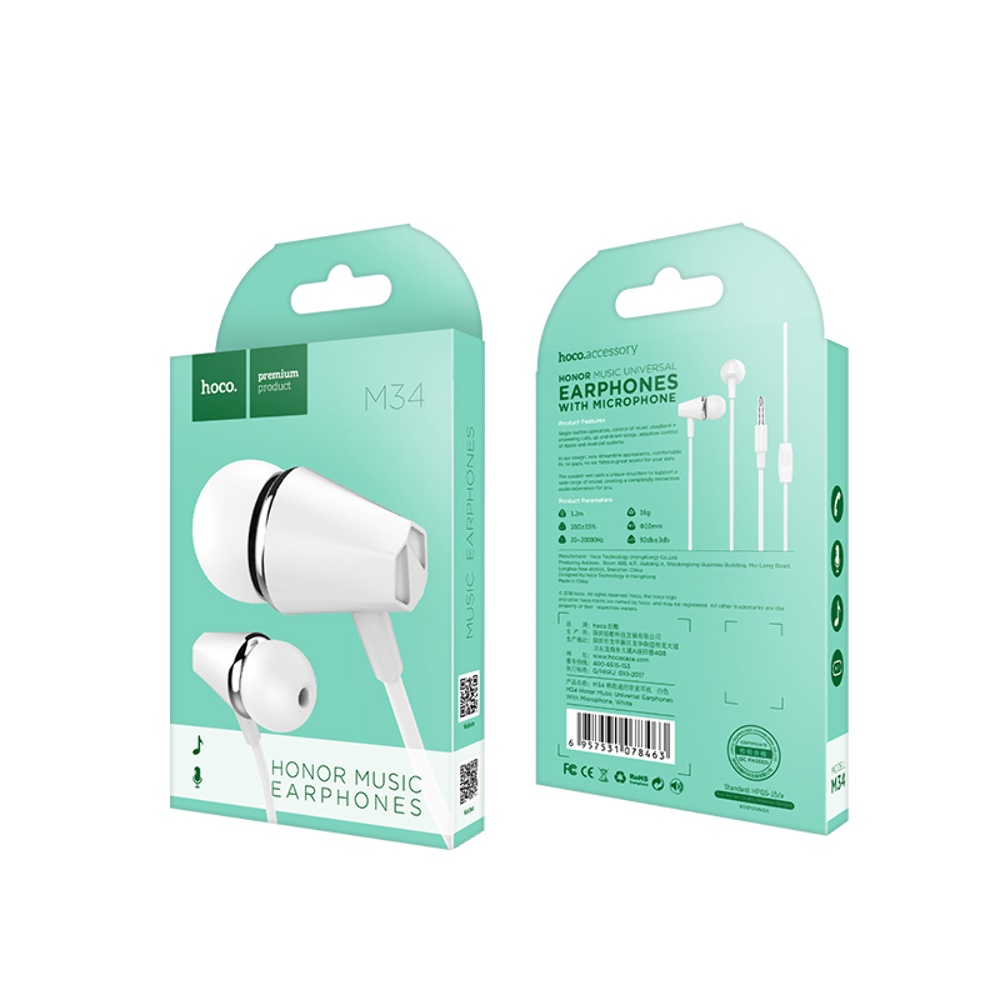 Опис товару Навушники вакуумні Hoco M34 білі