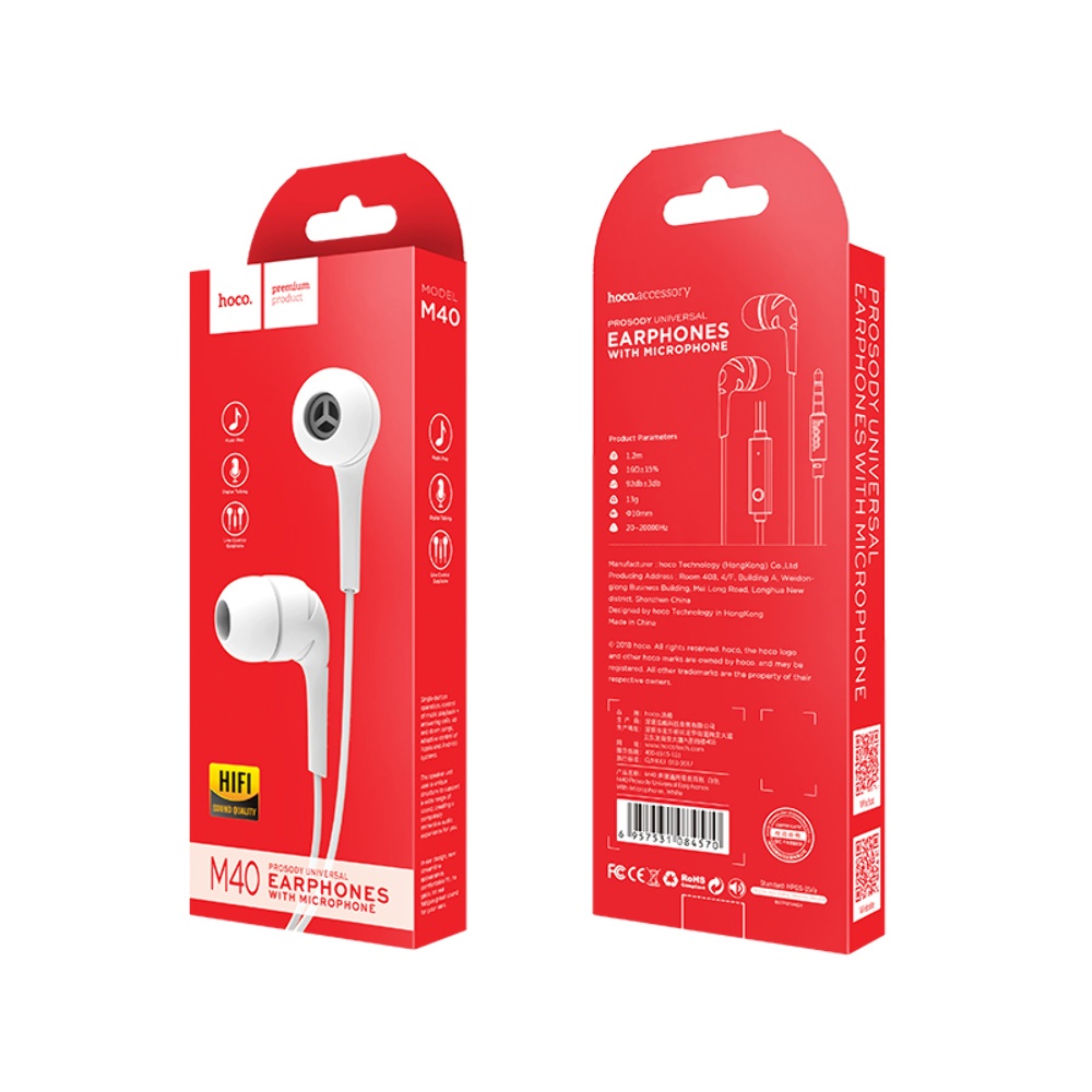 Навушники вакуумні Hoco M40 білого кольору - це ідеальне поєднання звуку, ергономічності і ціни. Комплектуються оригінальною упаковкою в стильному дизайні. Модель комфортно розташовується в вухах, представлена з мікрофоном і кнопкою прийому виклику. Гарнітура з класичним роз'ємом 3,5 мм сумісна з будь-яким сучасним телефоном. Плоскоовальний перетин кабелю перешкоджає сплутування і мінімізує контактні шуми. р>