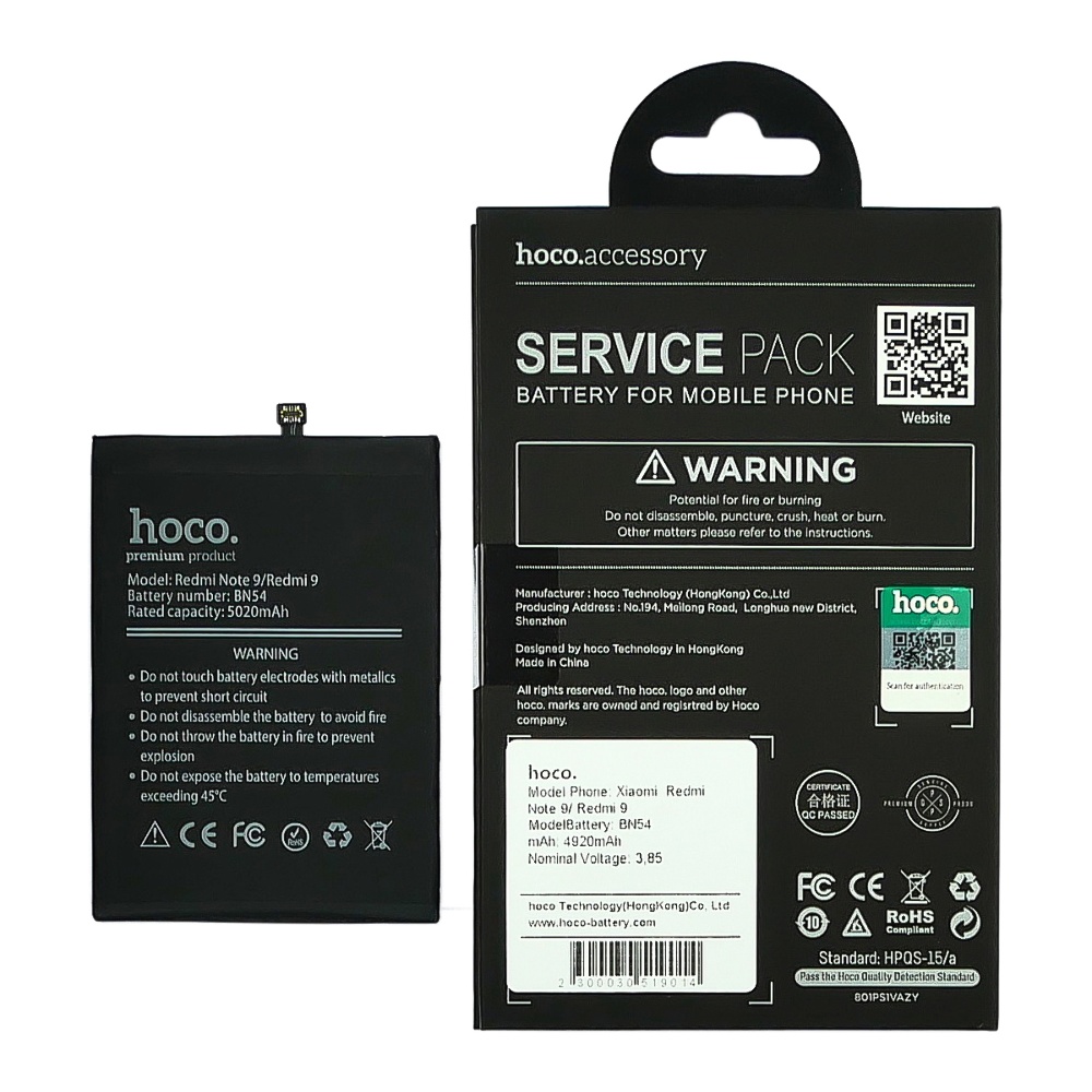 Акумулятор Hoco BN54 для Xiaomi Redmi Note 9 / Redmi 9 / Redmi 10X, а також інші запчастини і аксесуари для мобільних телефонів і планшетів можна вигідно придбати оптом в інтернет-магазині MasterClub.