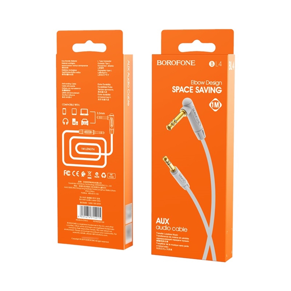 AUX кабель Borofone BL4 TRS 3.5 - TRS 3.5 1m сірий призначений для підключення різних гаджетів (смартфону, ноутбука, планшета) до програвача (магнітоли в автомобілі, колонкам, навушникам і т.д.). Шнур з довжиною 1m тактильно приємний, виконаний із якісних зносостійких матеріалів.