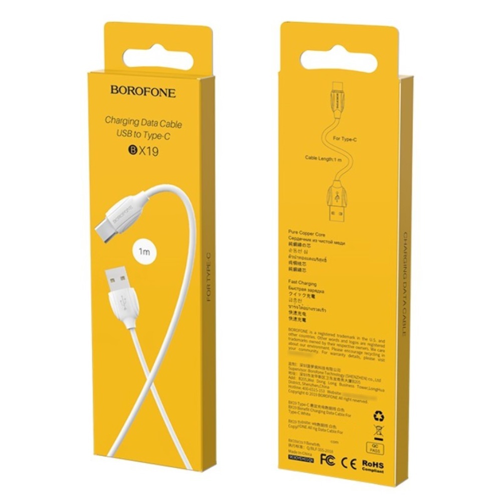 USB кабель Borofone BX19 Type-C 3A 1m білий чудове рішення для заряджання та синхронізації даних ваших гаджетів. Шнур тактильно приємний, виконаний із якісних зносостійких матеріалів. Зручна довжина кабелю 1m. Кабель USB Borofone BX19 дозволяє не лише зарядити ваші пристрої, а також передавати дані на комп'ютер чи смартфон.