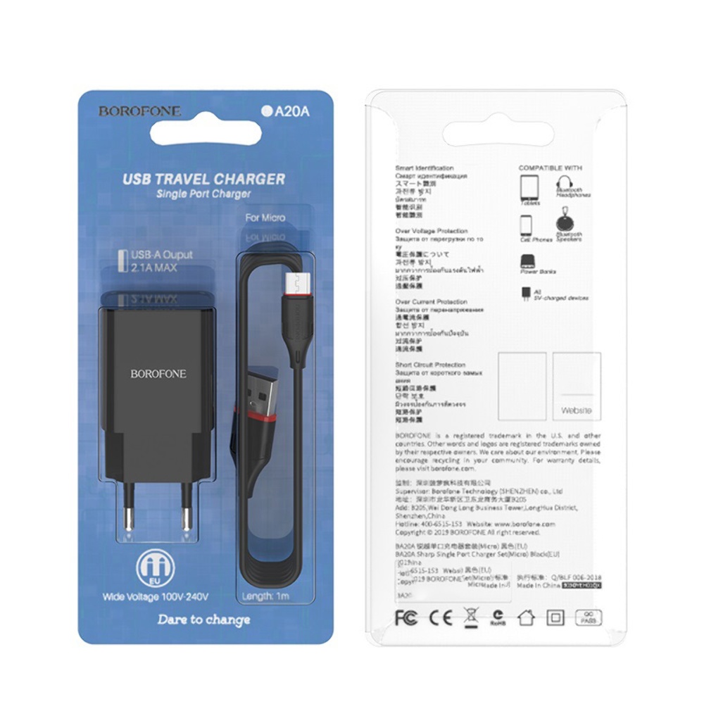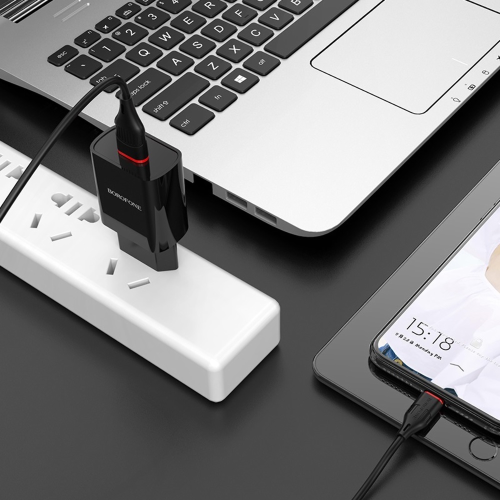 Мережевий зарядний пристрій Borofone BA20A USB 2.1A чорний + кабель USB to MicroUSB 1m - універсальний зарядний пристрій для ваших гаджетів. Підключається до електромережі через стандартні розетки. У зарядному пристрої передбачена багаторівнева система захисту від перегріву, перевантаження і короткого замикання, присутня смарт ідентифікація. Деталі корпусу виконані з пластика високої якості, що робить пристрій практичним і зручним у повсякденному використанні. У комплекті із зарядним пристроєм входить кабель з роз'ємом Micro-USB.