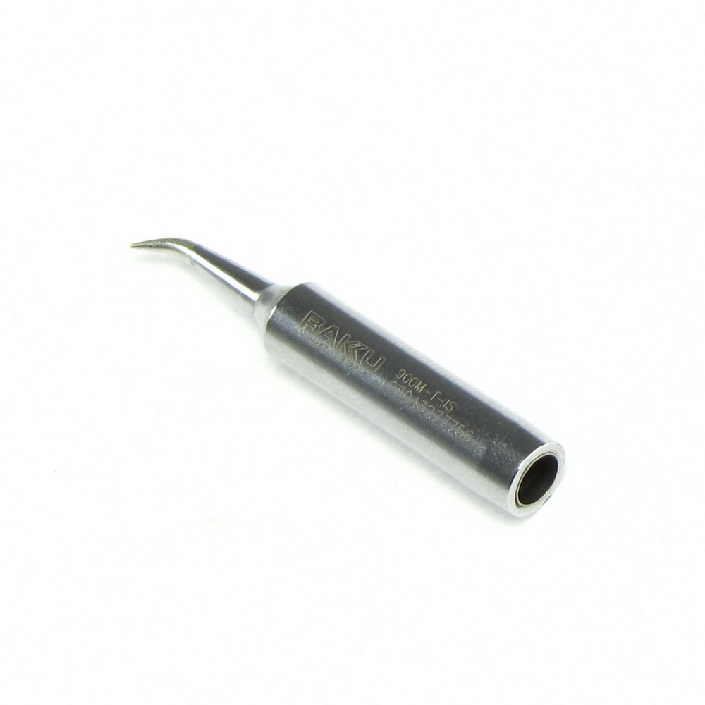 Жало паяльника BAKU 900M-T-S изогнутое - це змінний накінечник стандарту 900М для паяльників та паяльних станцій. Бронзовий сплав, що використовується в жалі, характеризується високою теплопровідністю і відмінно лудиться. Форма жала дозволяє рівномірно прогрівати дрібні деталі на платі, а антипригарне покриття суттєво продовжує термін служби паяльного жала при правильному його використанні.