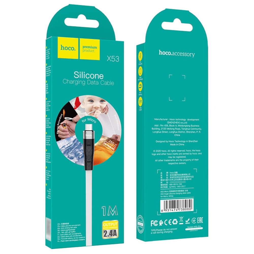 USB кабель Hoco X53 Micro 2.4A 1m білий чудове рішення для заряджання та синхронізації даних ваших гаджетів. Шнур тактильно приємний, виконаний із якісних зносостійких матеріалів. Зручна довжина кабелю 1m. Кабель USB Hoco X53 дозволяє не лише зарядити ваші пристрої, а також передавати дані на комп'ютер чи смартфон.