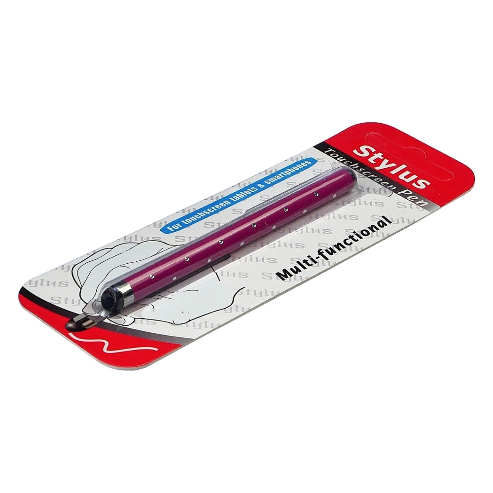Стилус ємнісний, алюмінієвий, з кристалами, рожевий