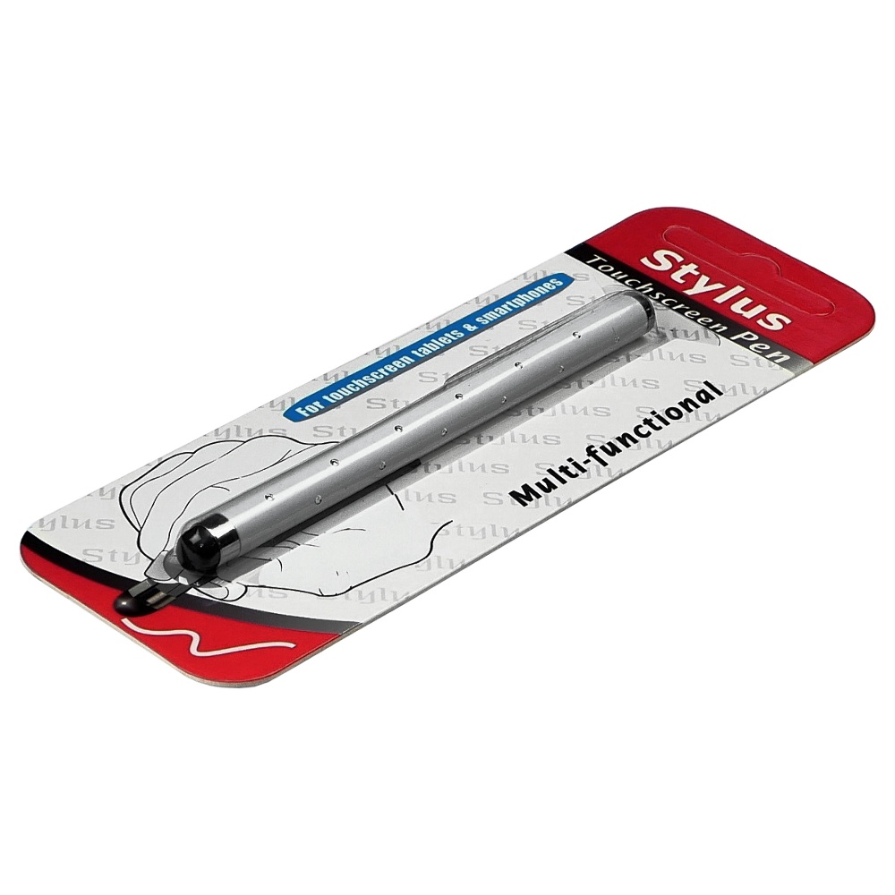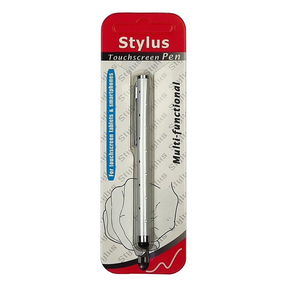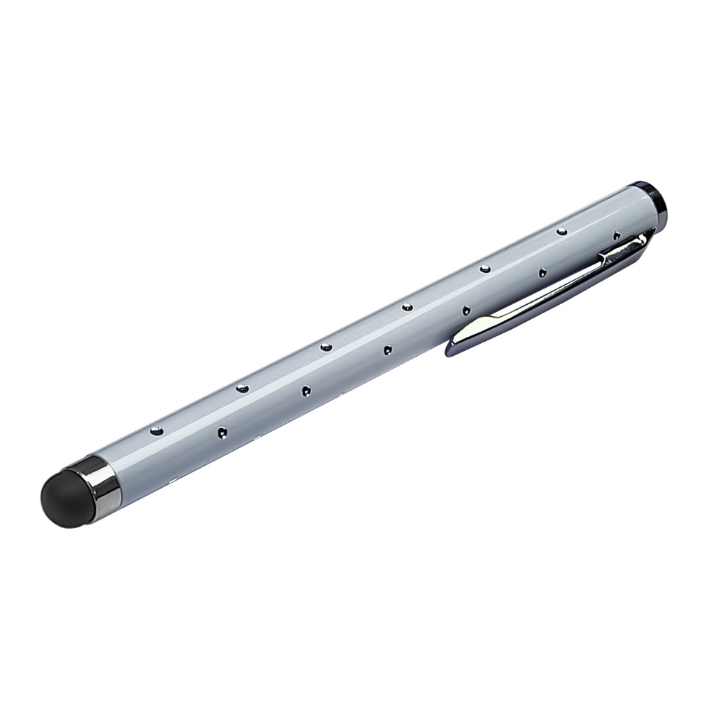 Стилус ємнісний, алюмінієвий, з кристалами, білий