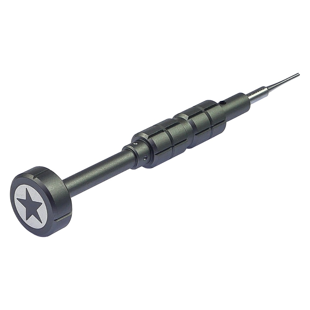 Викрутка оснащена п'ятипроменевим шліцем стандарту- Pentalobe P2 (0.8 mm) виготовленого з металу підвищеної міцності і головкою, що обертається, на кульковому підшипнику, що дозволяє точно відчувати силу затягування дрібних гвинтів, щоб уникнути зриву їх різьблення.