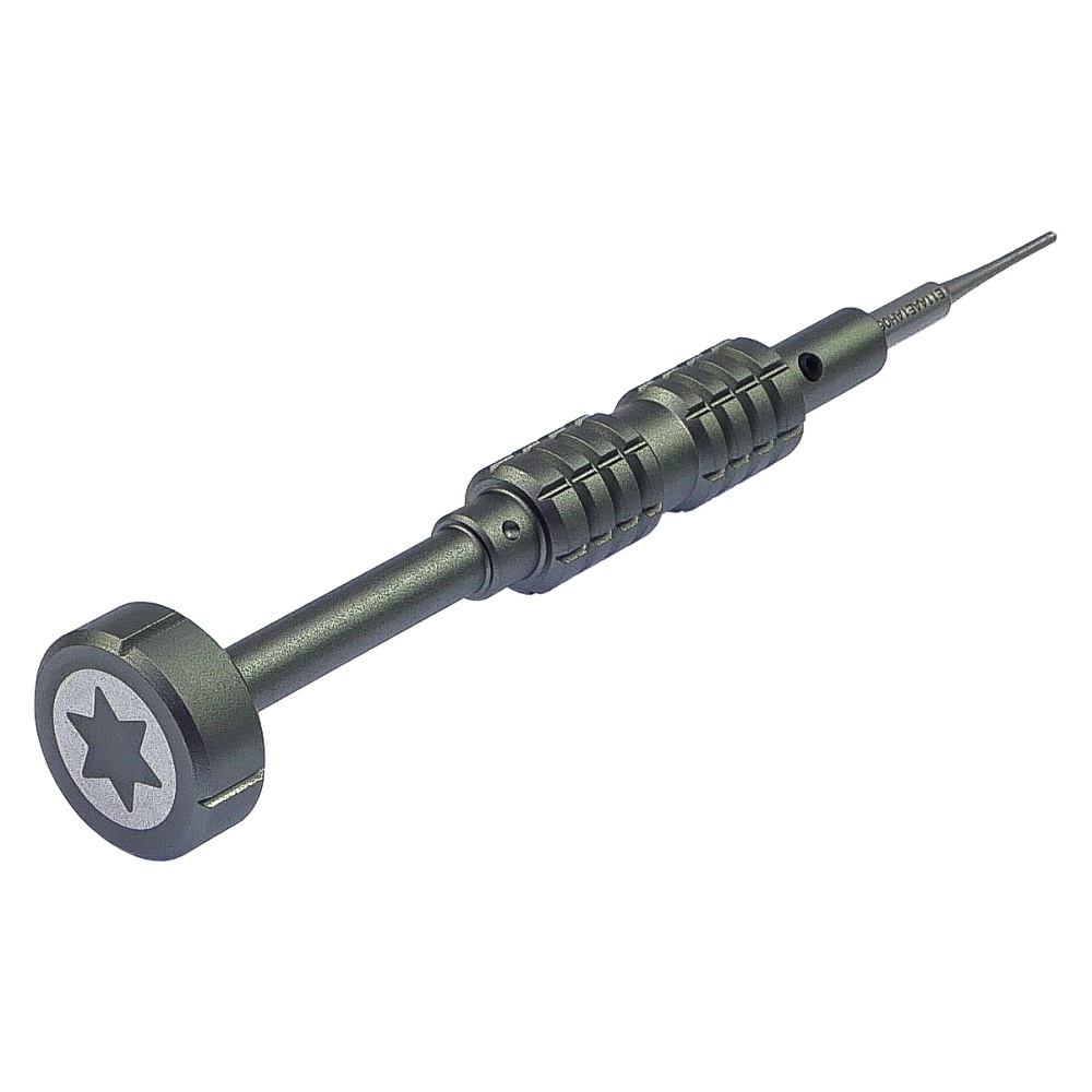 Викрутка оснащена зіркоподібним шліцем стандарту- Torx T2 виготовленого з металу підвищеної міцності і головкою, що обертається, на кульковому підшипнику, що дозволяє точно відчувати силу затягування дрібних гвинтів, щоб уникнути зриву їх різьблення.