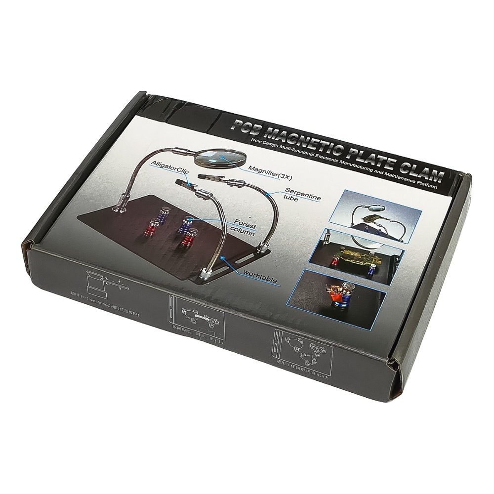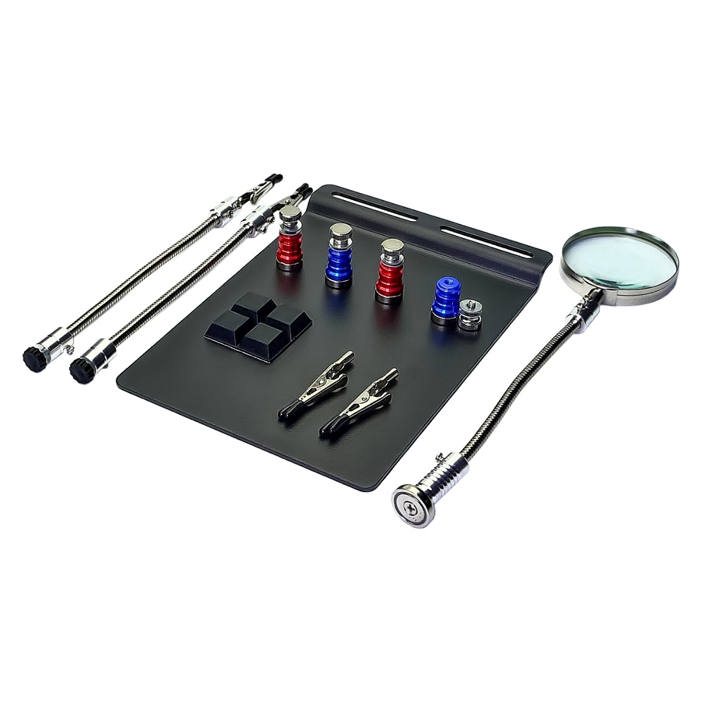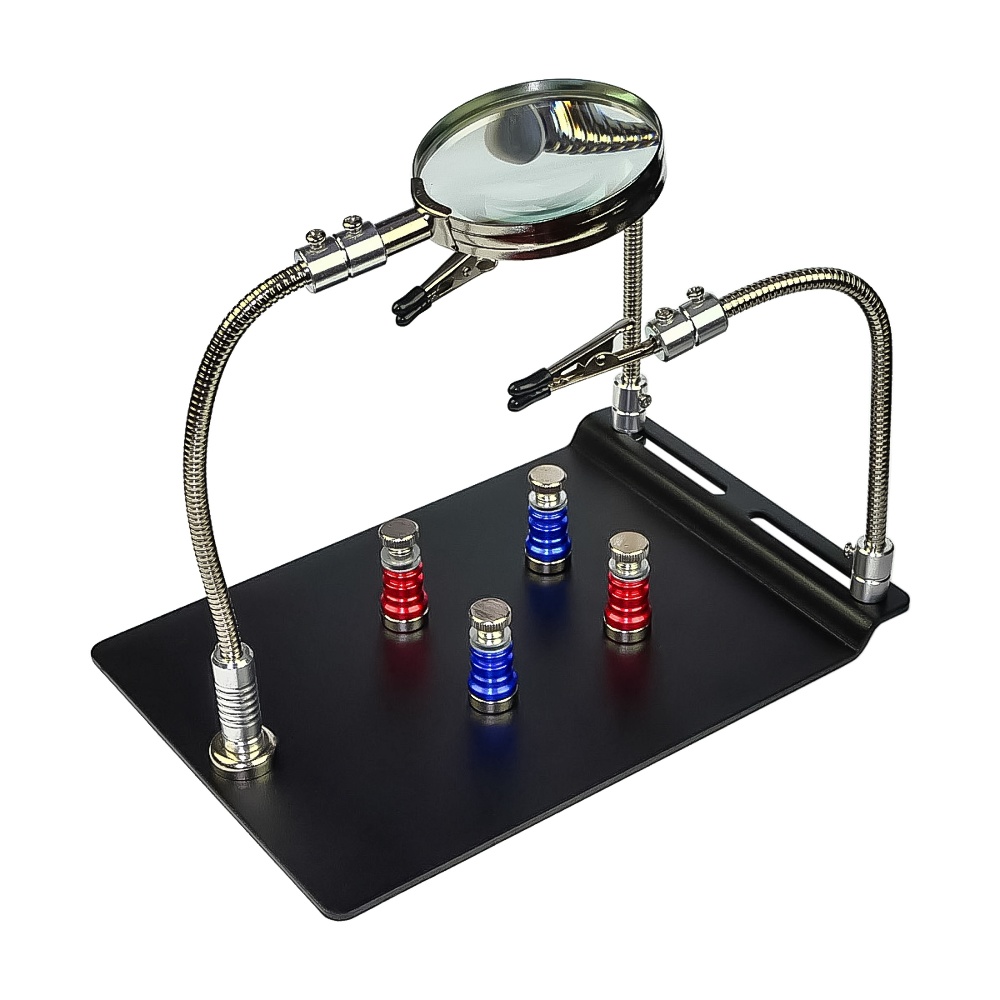 Тримач плат TE-804 із затискачами на гнучких ніжках (2 шт), магнітними фіксаторами (4 шт) та лінзою (d=62 мм, 3x)