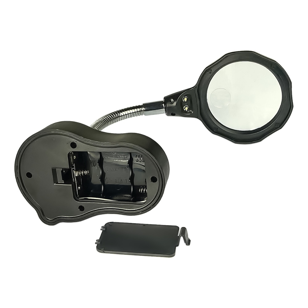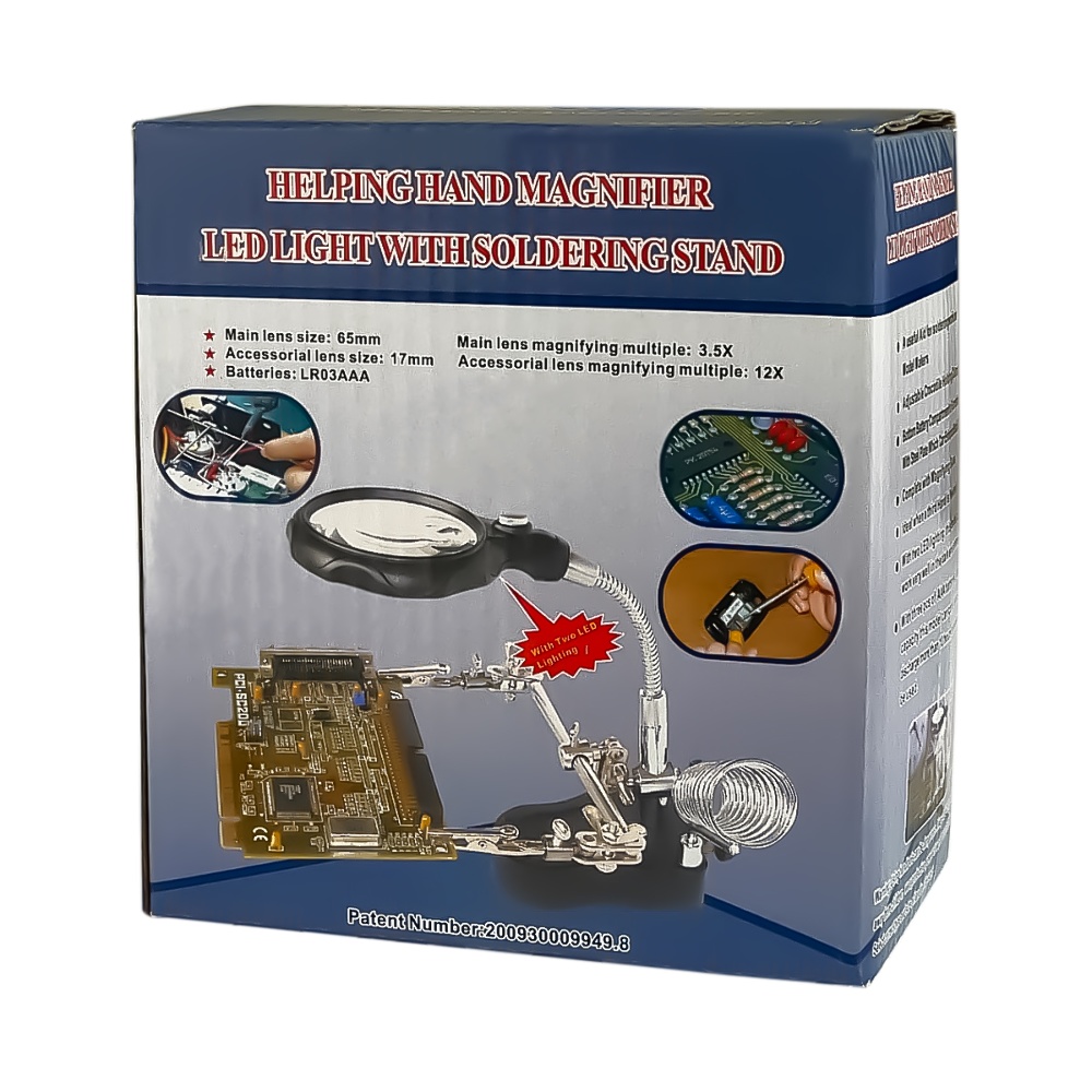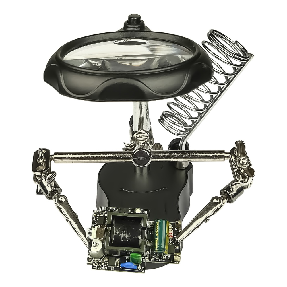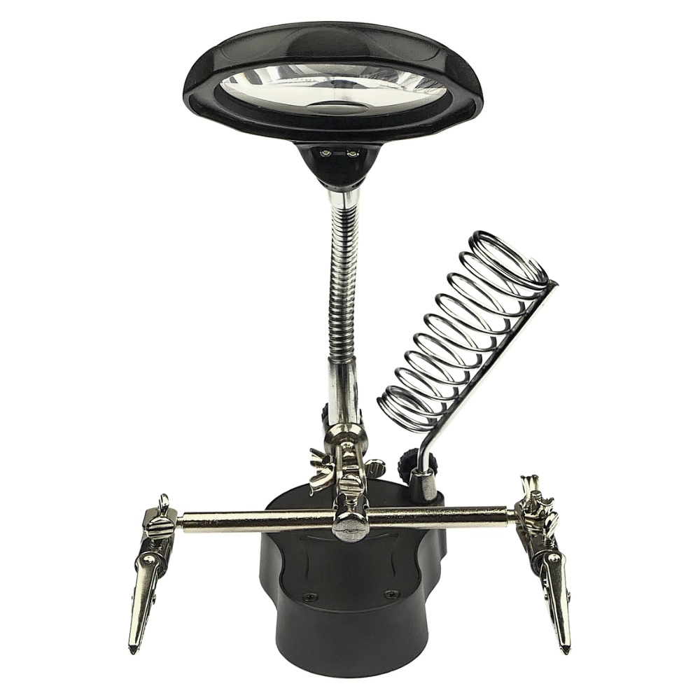 Тримач плат і паяльника MG16126-A з LED-підсвічуванням і подвійною лупою (велика лупа d=65 мм, 3.5x; мала лупа d=17, 12x)
