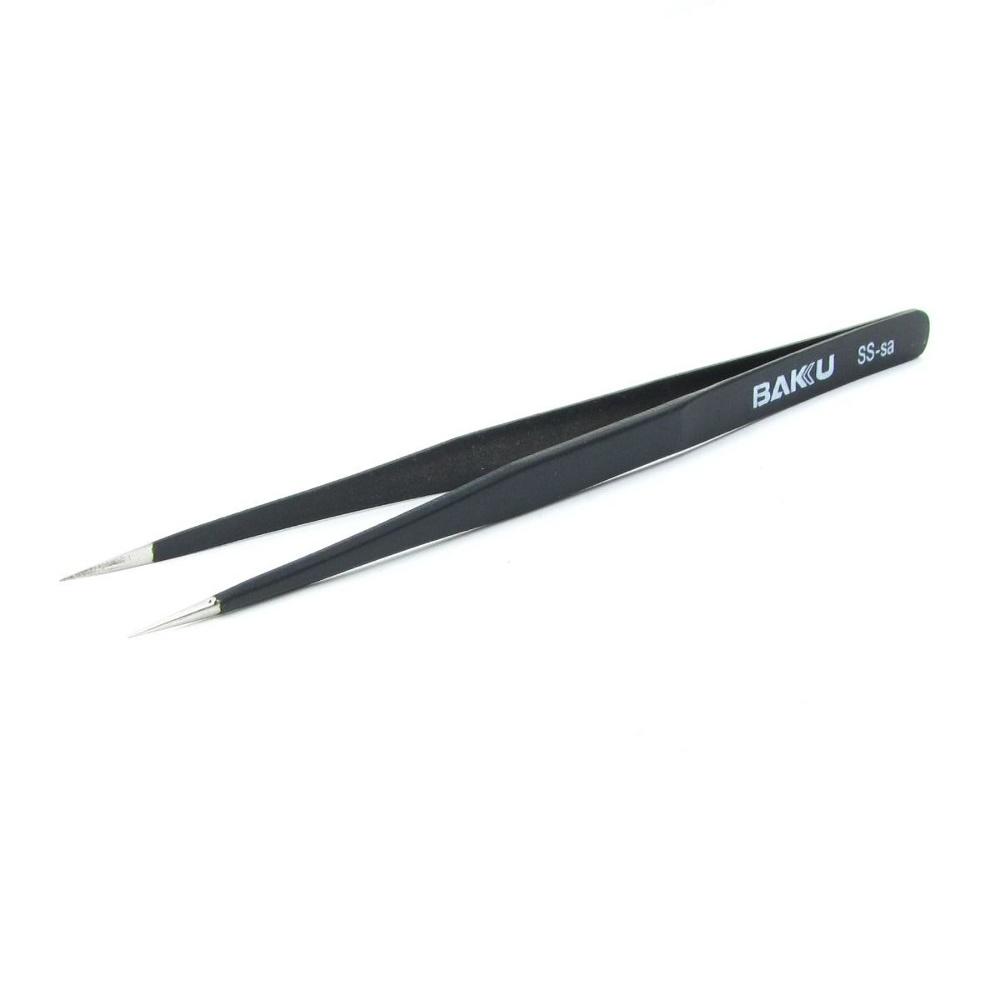 Пінцет прямий Baku BK-SSsa з чорним антистатичним покриттям