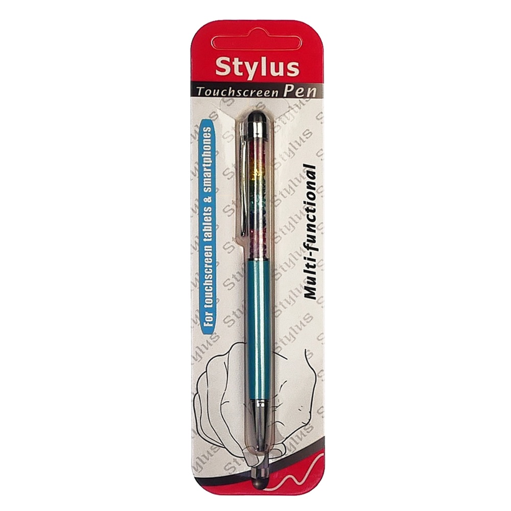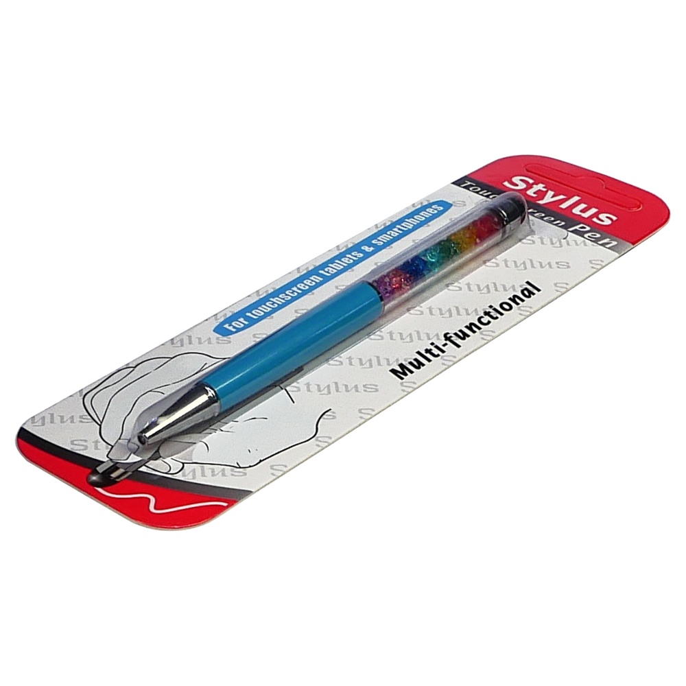 Стилус ємнісний, з кульковою ручкою, металевий, блакитний з кристалами кольорів веселки